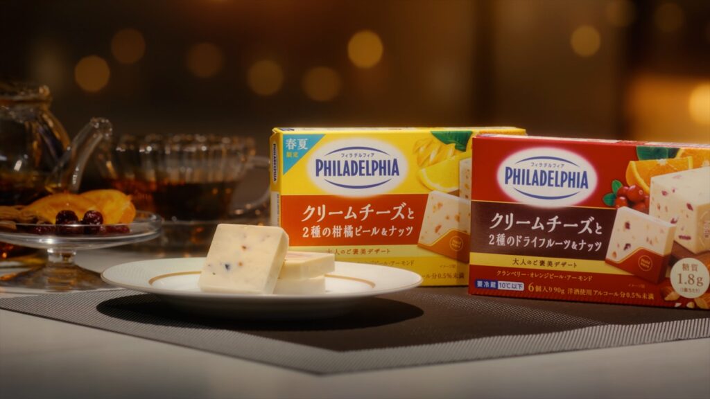 「フィラデルフィア」は140年以上の歴史がある、売上世界No.1のクリームチーズブランドです。日本においても、森永乳業が1970年に初めてクリームチーズを発売して以来、多くのお客さまに支持され続け、2025年に55年目を迎えるロングセラーブランドです。今回3月1日より新たに発売された、デザートタイプの新商品「フィラデルフィアデザート6P クリームチーズと2種のドライフルーツ&ナッツ」、「フィラデルフィアデザート6P クリームチーズと2種の柑橘ピール&ナッツ」は、どちらも北海道産とオーストラリア産の2種のクリームチーズに北海道産マスカルポーネを配合し、さらにクリームチーズと相性のよいフルーツやナッツを贅沢に入れた、ひと口食べるとザクザクとした心地よい食感をお楽しみいただけるひとくちサイズのクリームチーズデザートです。