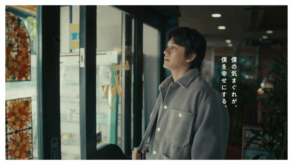 動画では、とある商店街を舞台に、北村匠海さん、清原果耶さんの他、ユカリ役の真雪さん、マモル役の辻陸さんを含めた4名が、日常の中でいつもと違う場所に出かけたことをきっかけに、素敵な何かとの「まさかの出会い」を果たします。登場人物にとって大切な日になったことを、記念写真を撮る描写でポップに表現。予想外の出会いに心が躍るラストシーンは、イラストレーターのエビアヤノさんによるイラストが盛り上げます。