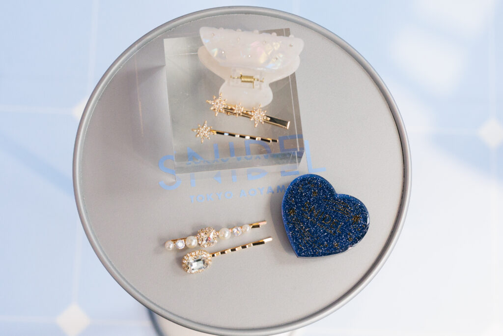 様々なアイテムがゲットできる人気のCAPSULE TOYS(1pLay 990円/QR決済のみ)もHOLIDAY仕様で登場。キラリと光るビジューづかいが特徴のヘアピン2個セット×4種と、SNIDELロゴをあしらったスマホグリップ1種の全5種類がラインアップ。お目当てのアイテムを狙って何度でも楽しんじゃおう。