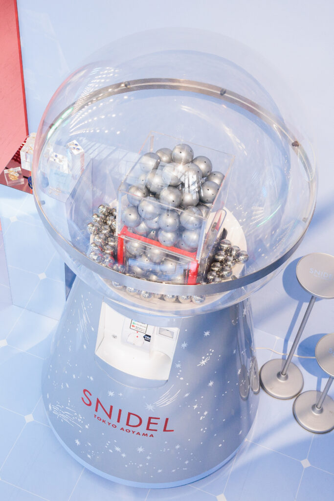 【SILENT GLOW HOLIDAY】「冬の空気に溶け込む、そっと煌めく瞬間」をコンセプトに、SNIDEL TOKYO AOYAMAではお馴染みの“カプセルトイやカフェメニューもHoliday仕様に!20周年を迎えられた感謝の気持ちを込めて、日頃からSNIDELを愛してくださるみなさまをドリーミーな空間へと誘います。