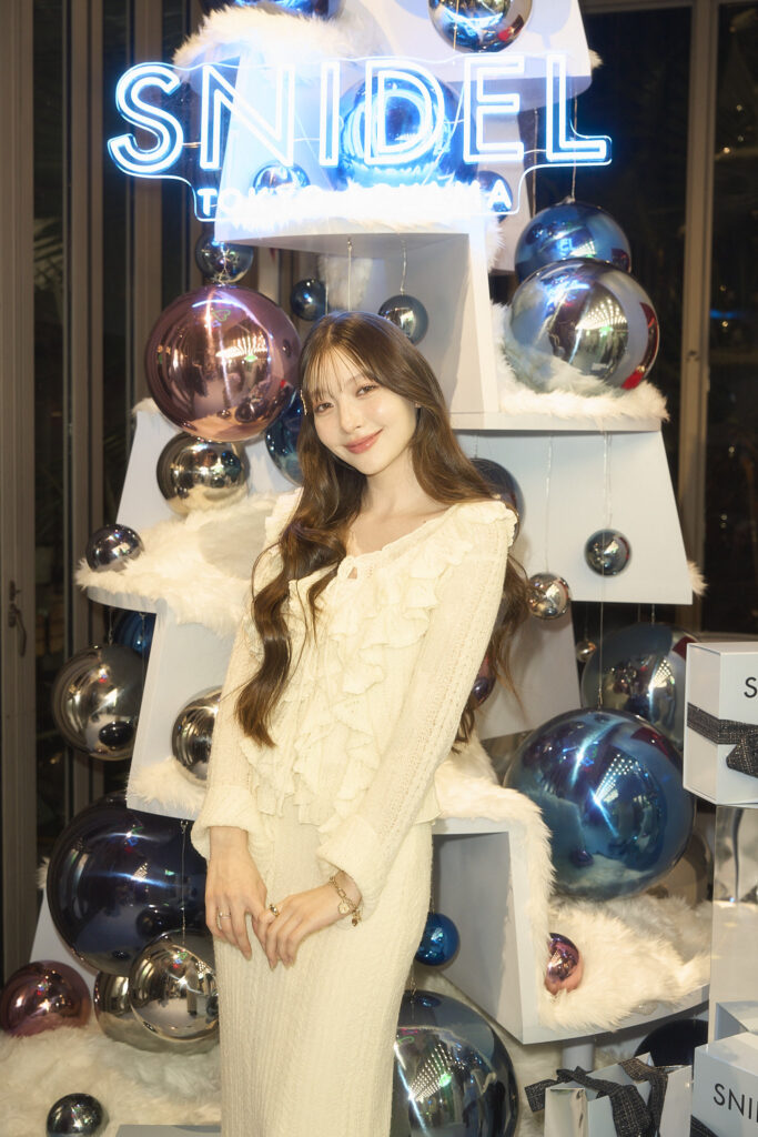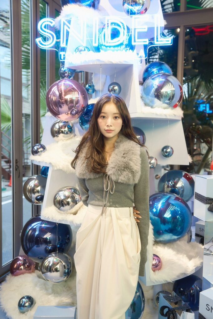 SNIDEL唯一の路面店である青山店だからこそ実現したスペシャルな空間に、八木アリサ、川島海荷、古畑星夏、藤井サチらが来場。一足早くホリデー気分を満喫していました。