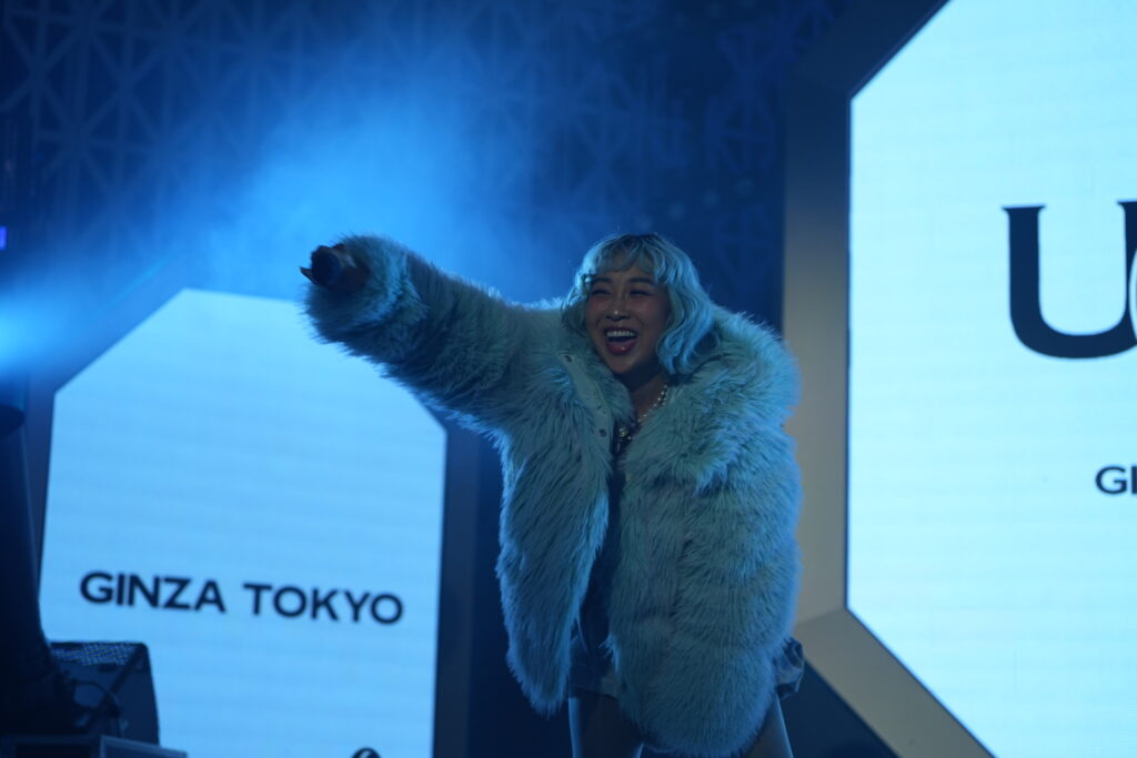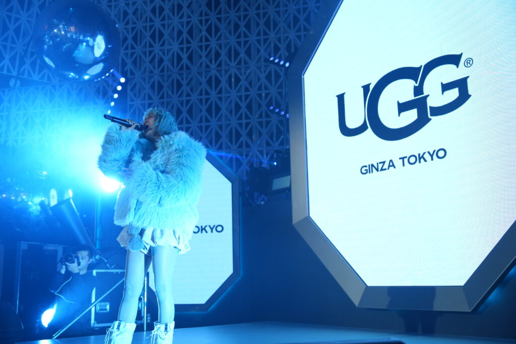 銀座RAISEにて開催されたレセプションパーティーでは、UGG® 2021年秋冬キャンペーン「FEEL YOU」でアンバサダーを務め、UGG®の愛用者でもある青山テルマさんがスペシャルゲストとして登場。「UGG®銀座松屋通り」のオープンを祝した、一夜限りの特別ライブパフォーマンスが実現しました。