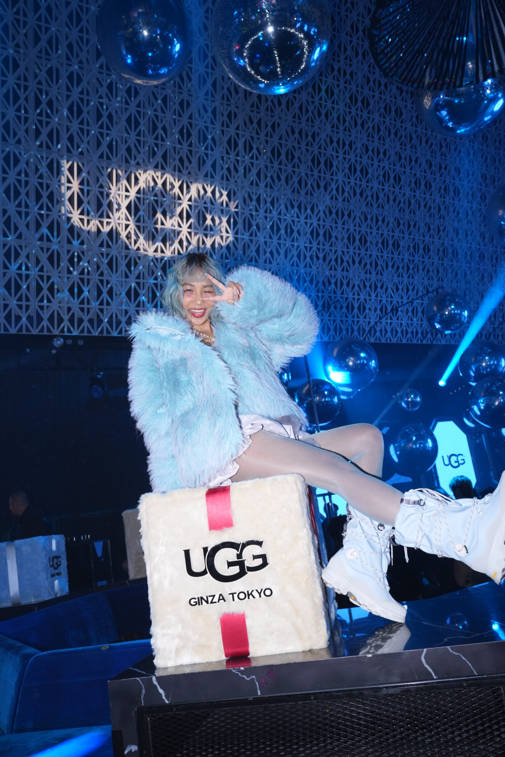 銀座RAISEにて開催されたレセプションパーティーでは、UGG® 2021年秋冬キャンペーン「FEEL YOU」でアンバサダーを務め、UGG®の愛用者でもある青山テルマさんがスペシャルゲストとして登場。「UGG®銀座松屋通り」のオープンを祝した、一夜限りの特別ライブパフォーマンスが実現しました。