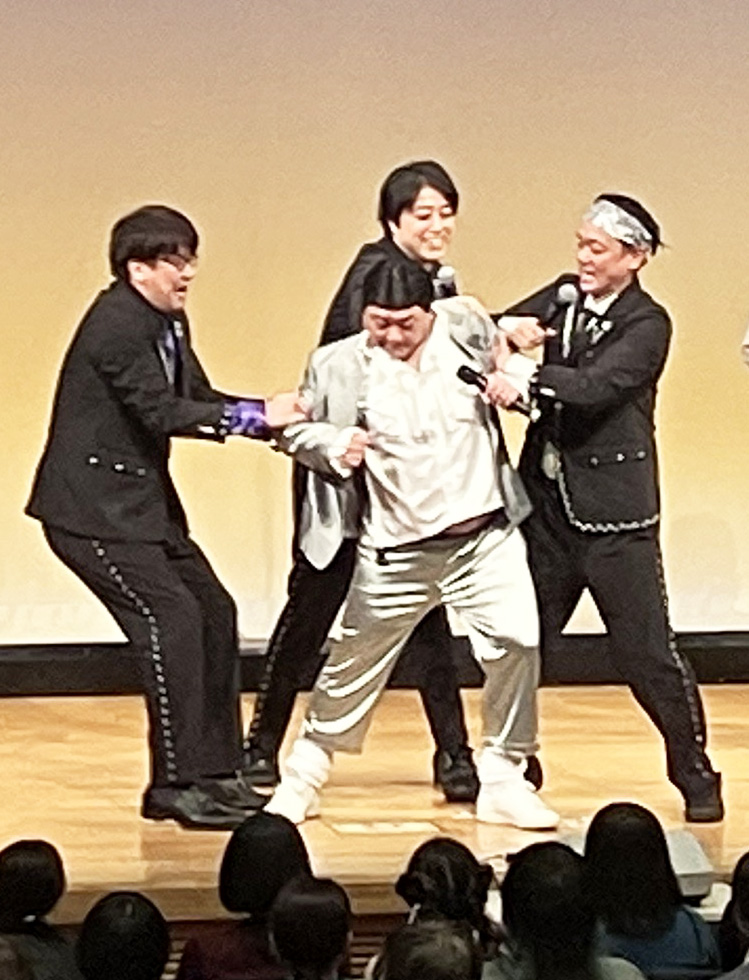 6人のうち2、3人が出て漫才やコントを行うのではなく、6人で行うコント。漫才。昭和の時代、テレビの前で夜8時を待ちわびた『8時だョ!全員集合』や『ドリフ大爆笑』を彷彿とさせるネタを見せてくれます。