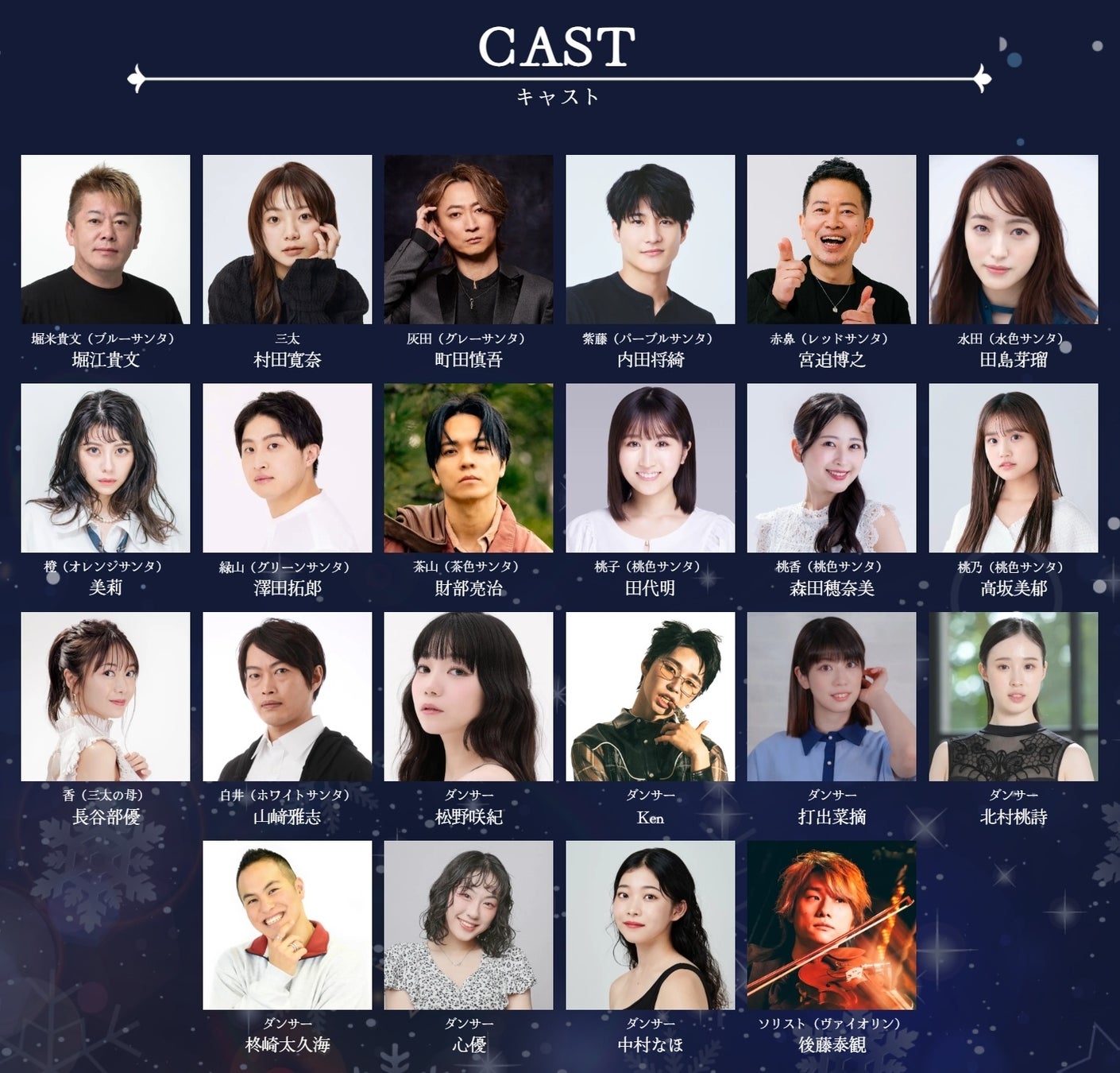 堀江貴文、村田寛奈、町田慎吾、内田将綺、宮迫博之、田島芽瑠、美莉、澤田拓郎、財部亮治、田代明、森田穂奈美、高坂美郁、長谷部優、山﨑雅志、松野咲紀、Ken、打出菜摘、北村桃詩、柊崎太久海、心優、中村なほ、後藤泰観