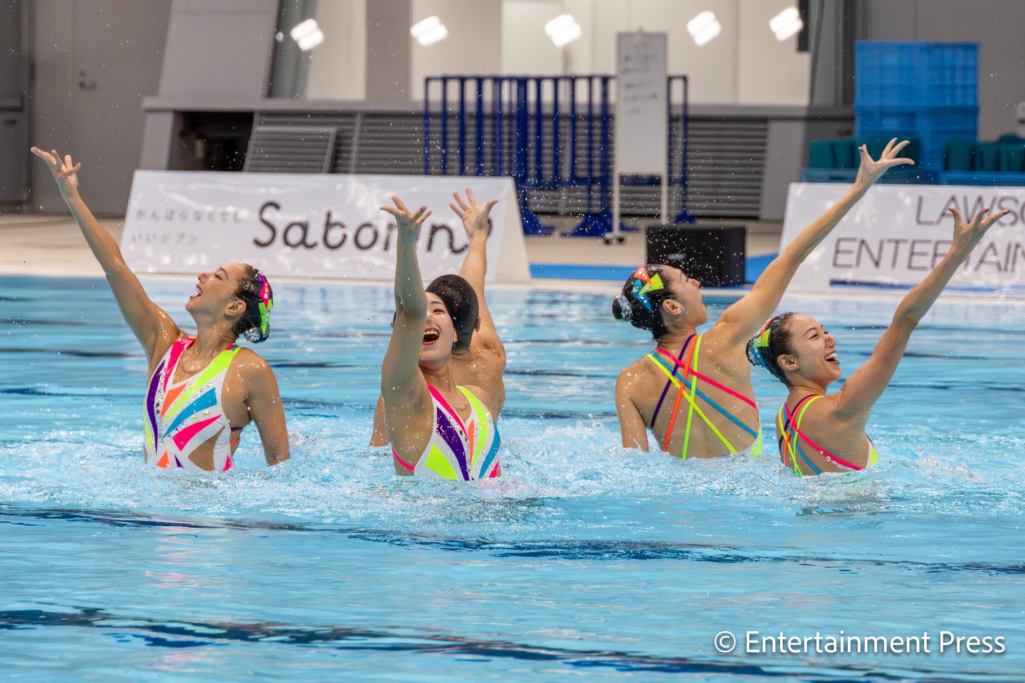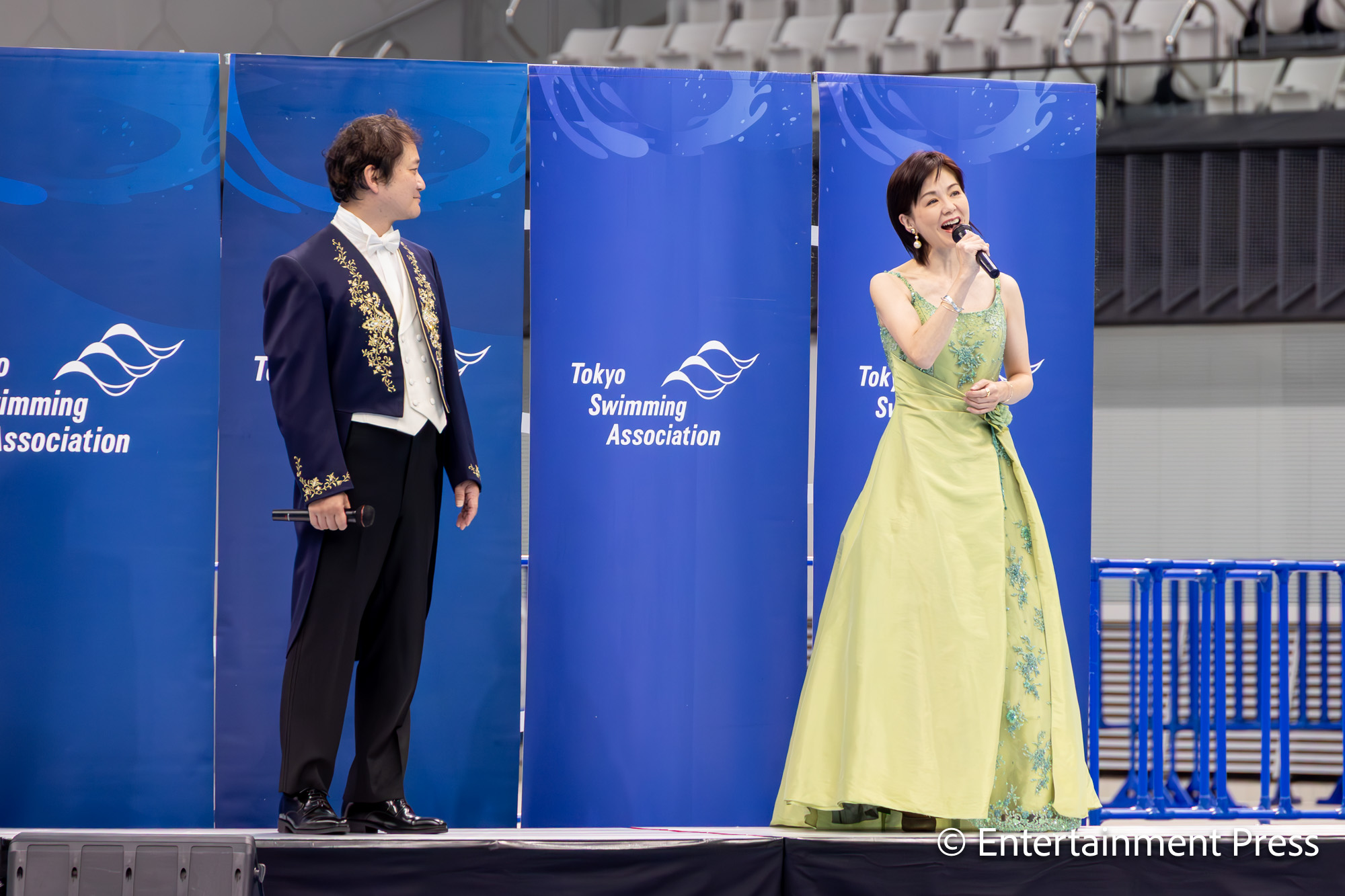 第2部では、小谷実可子をはじめ、藤丸真世(アテネ五輪銀メダリスト)、三井梨紗子・箱山愛香(リオ五輪銅メダリスト)、安部篤史(シンクロ史上初の男子日本代表)、AS BOYS&GIRLSによるスイムショーが行われました。また、歌手 阿川建一郎・沼尾みゆきとの豪華な歌のコラボ企画も行われました。競技とは全く違う、生歌との一体感のあるスイムショーをプールサイドで観覧することができる貴重なイベントでした。