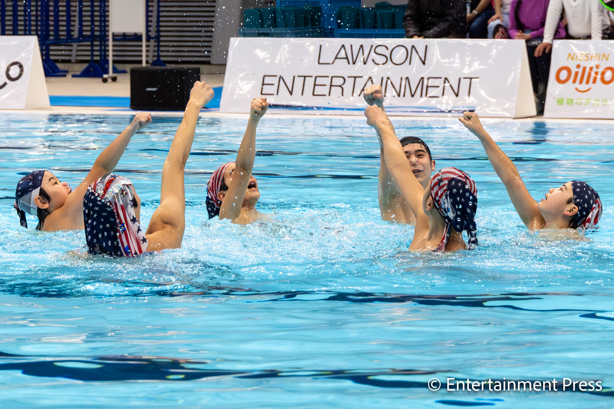 2部構成で開催され、第1部では、今年7月に開催された世界マスターズシンガポール大会に出場した選手やアーティスティックスイミングの愛好家、約70名による演技発表会が行われました。