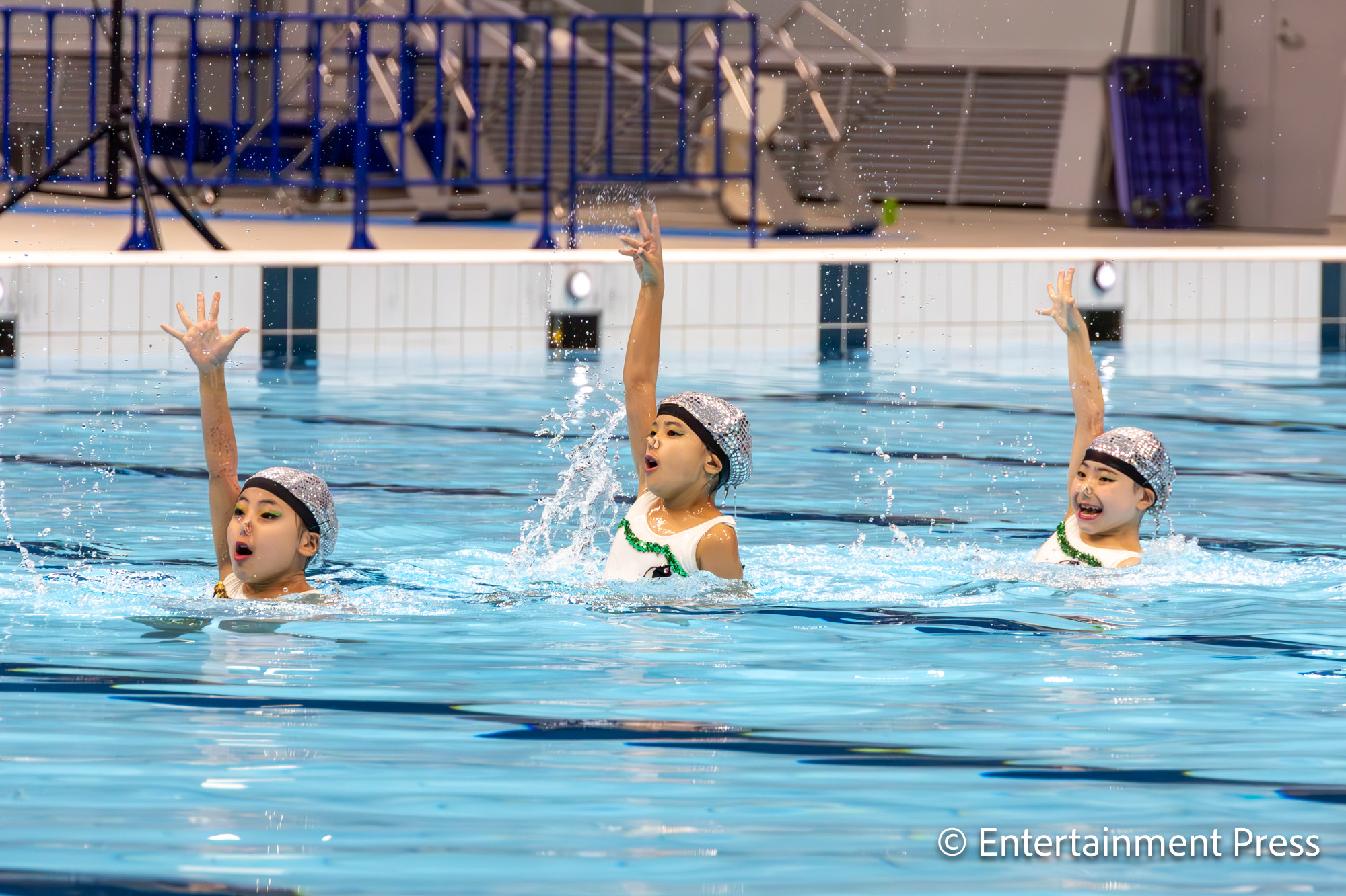 第1部:約70名のアーティスティックスイミングのマスターズ選手や愛好家の演技発表会、オリンピアンによる講評