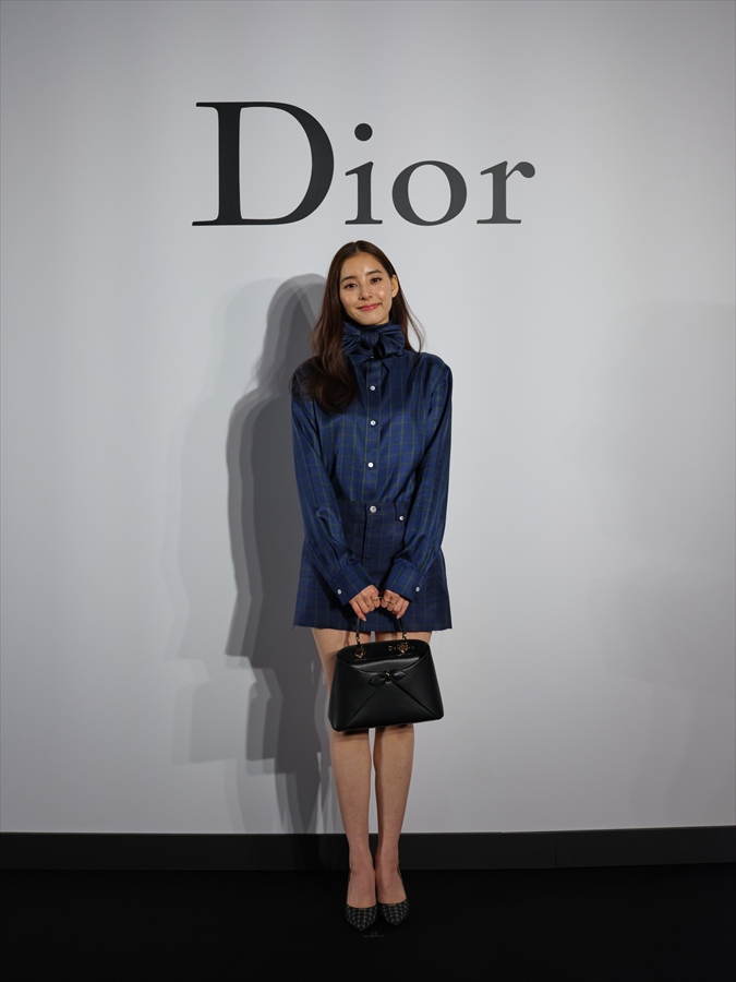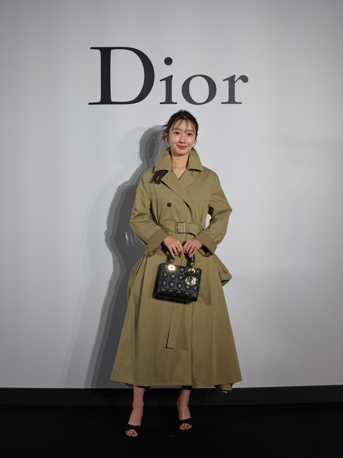 波瑠はハリ感のあるトレンチコートにブラックのミス ディオールを合わせたな装いで登場し、コーディネートのポイントについて「今日はトレンチコートをドレスのように着ていて、サイドにたっぷりとドレープがあるデザインをとても気に入っています。立てた襟の裏側がレザーになっていて、それがポイントになっているかなと思います。」と語った。