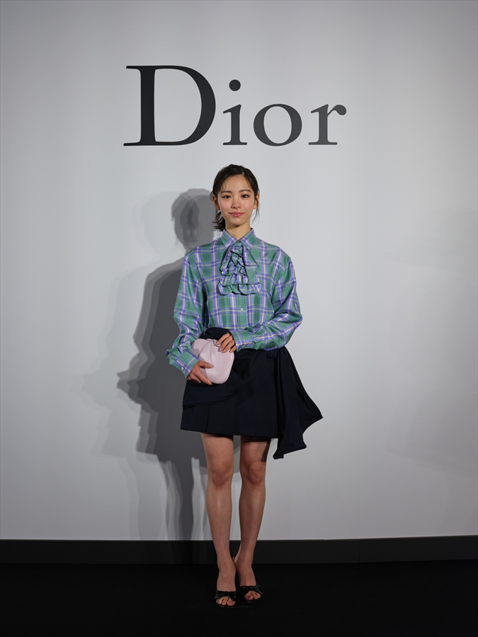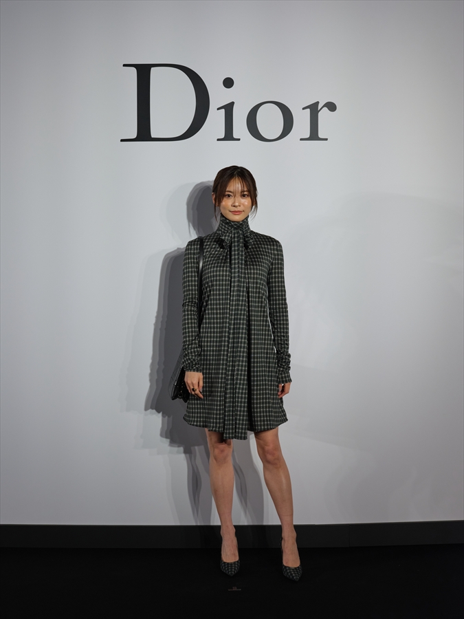 永瀬莉子は上品なチェック柄のワンピース姿で登場し、コーディネートのポイントについて「まずはこのチェックの印象的なワンピースもお気に入りですし、それと同じ柄のパンプスを今日は履いていて、その統一感も素敵だなと思っています。このリボンがあしらわれているのも、新しくデザイナーに入られたジョナサンらしいなと思っていて、この上品なコーデがとても気に入っています。」と話した。