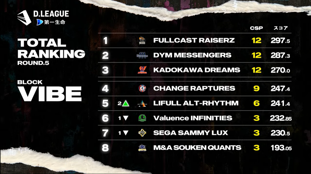 【4th Match:KADOKAWA DREAMS VS FULLCAST RAISERZ(55.8-44.2)】